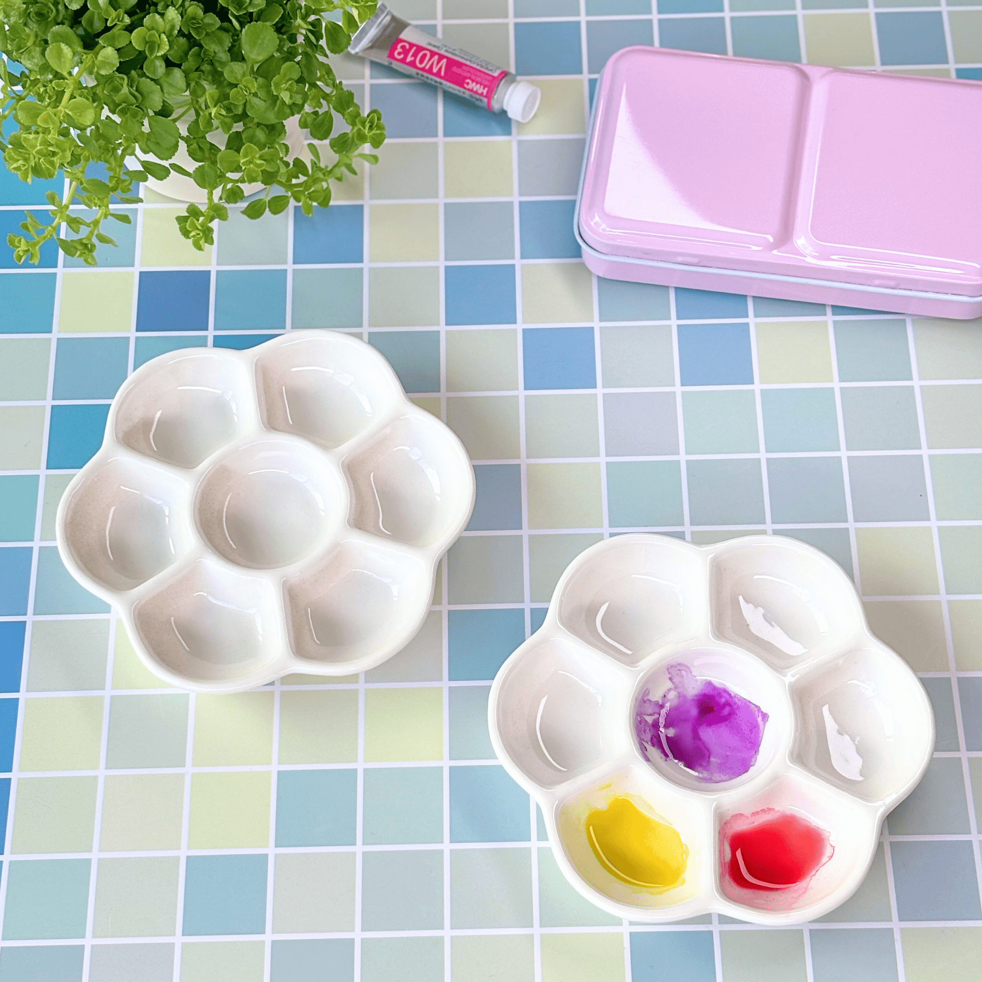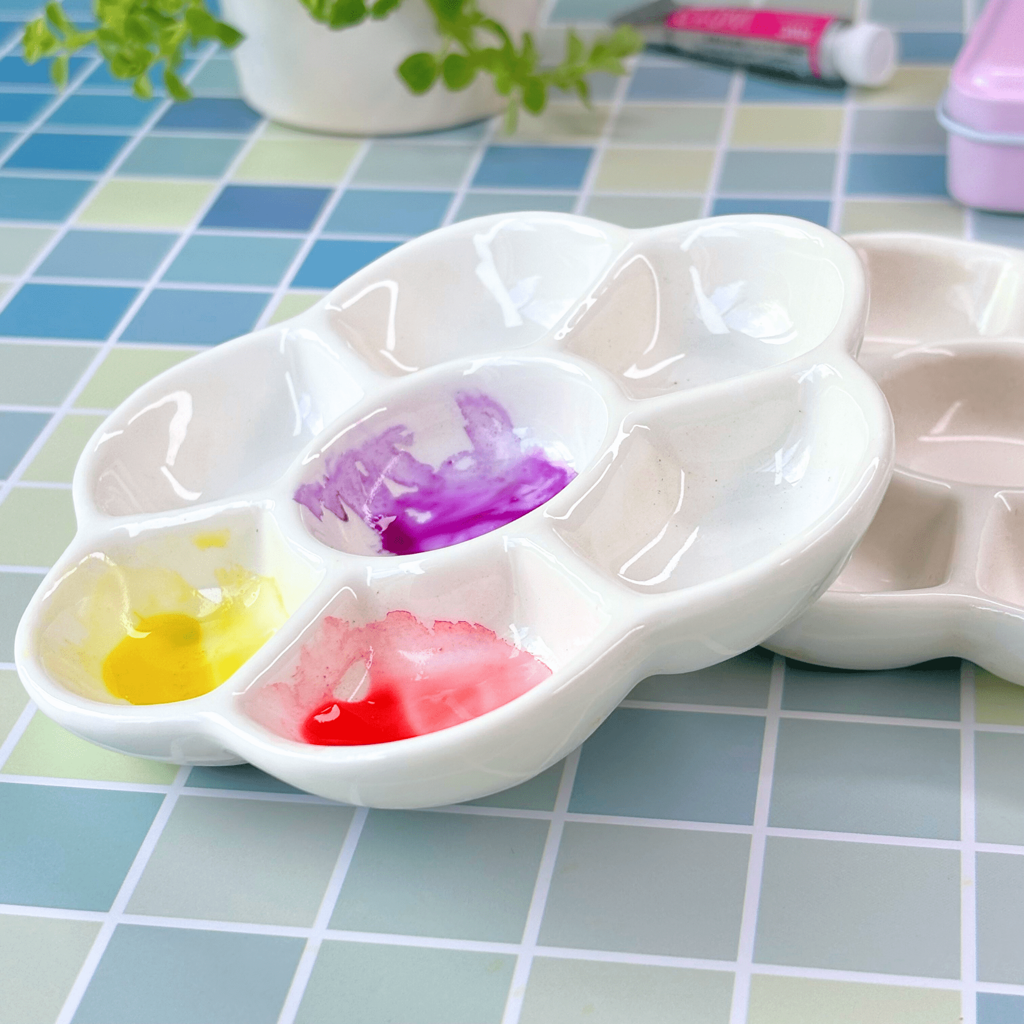 ROSE MINI : Palette avec 7 emplacements, fait main en céramique 100% porcelaine.