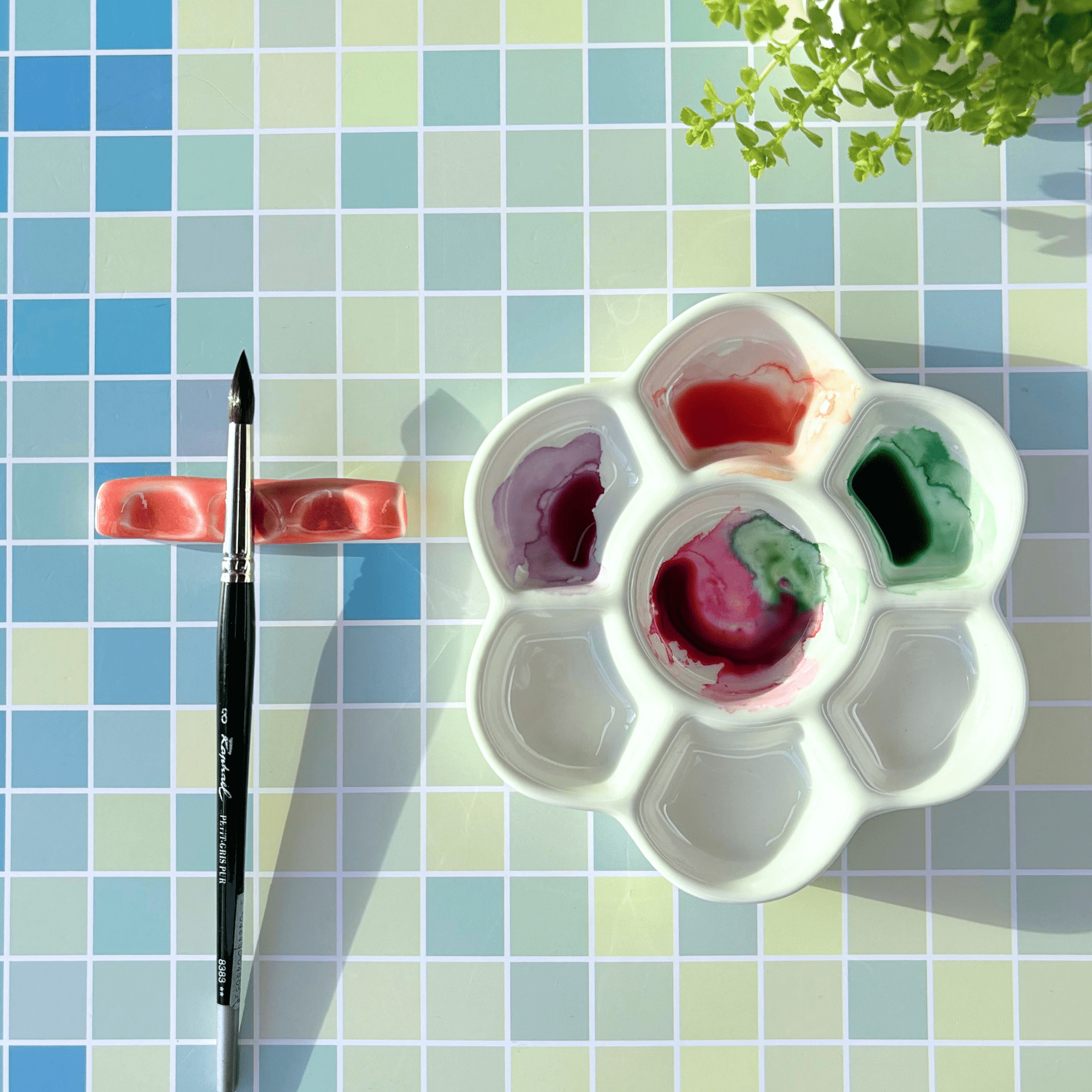 ROSE SMALL : Palette 7 emplacements, fait main en céramique 100% porcelaine.Créez un environnement sophistiqué sur votre bureau avec cette palette aux très belles proportions.