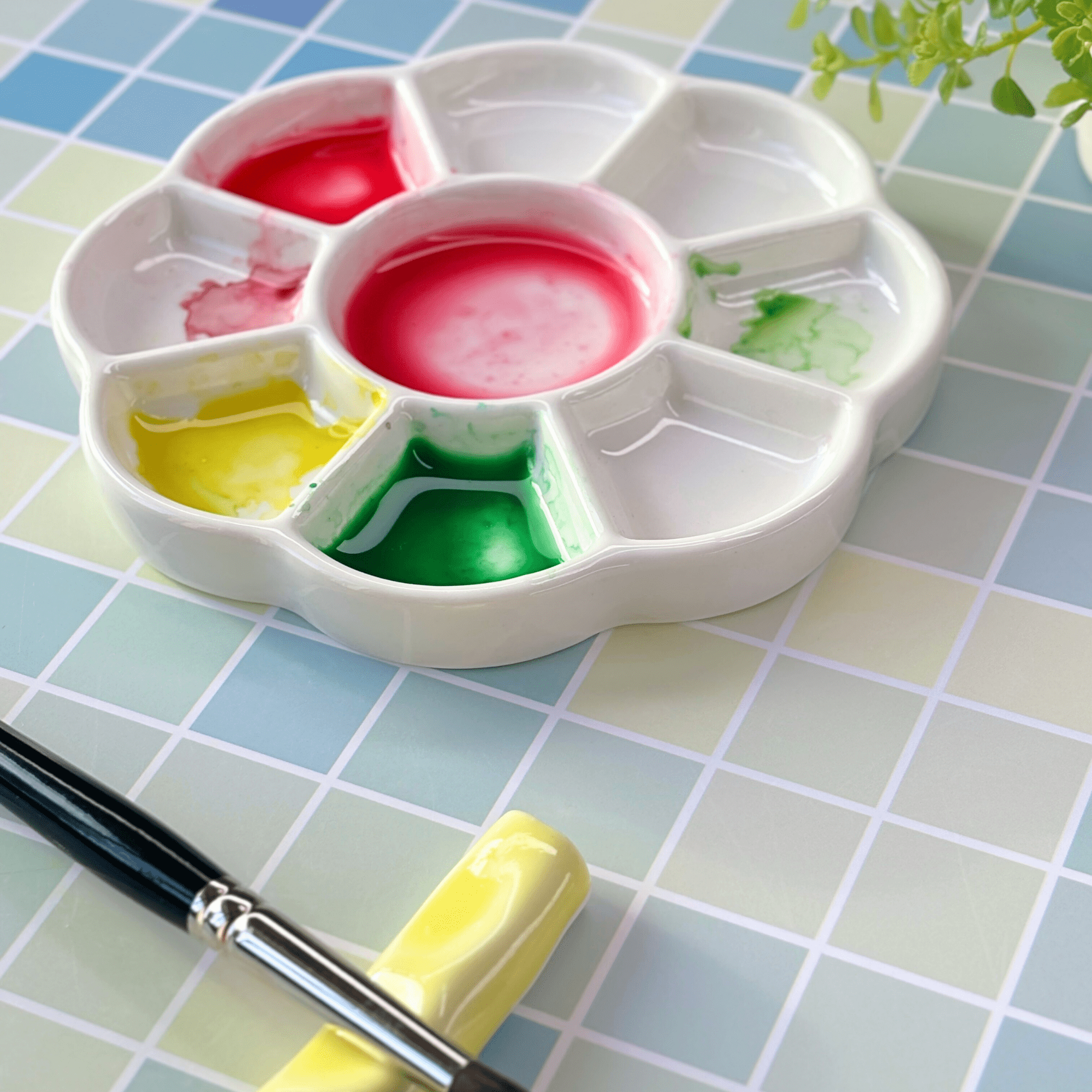 Fleur Thin : Palette avec 9 emplacements, fait main en céramique 100% porcelaine.