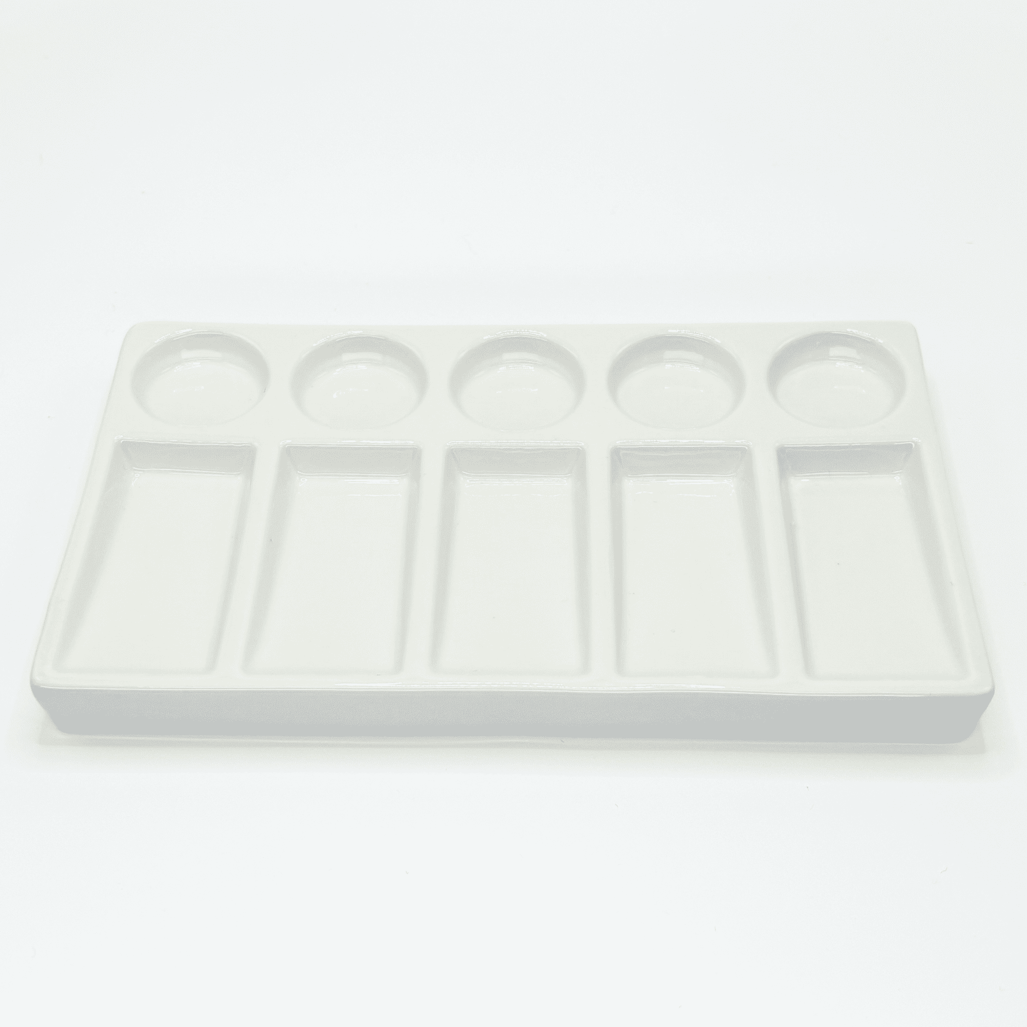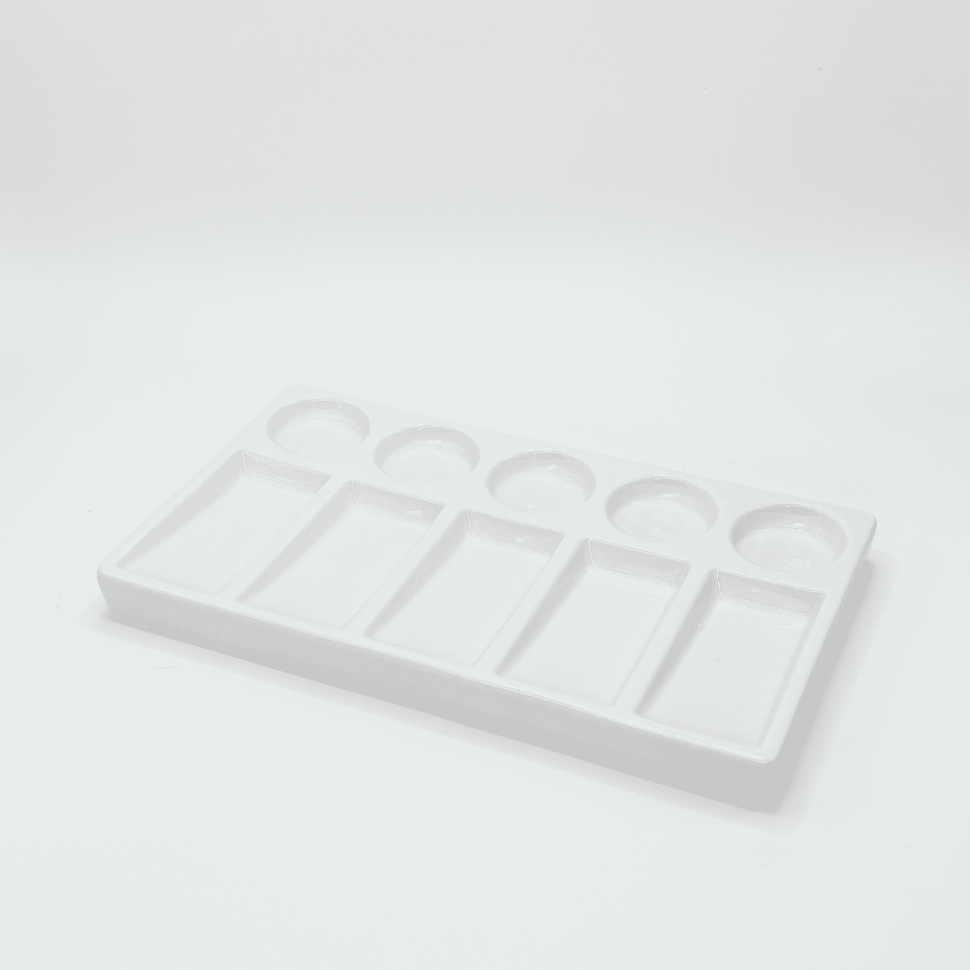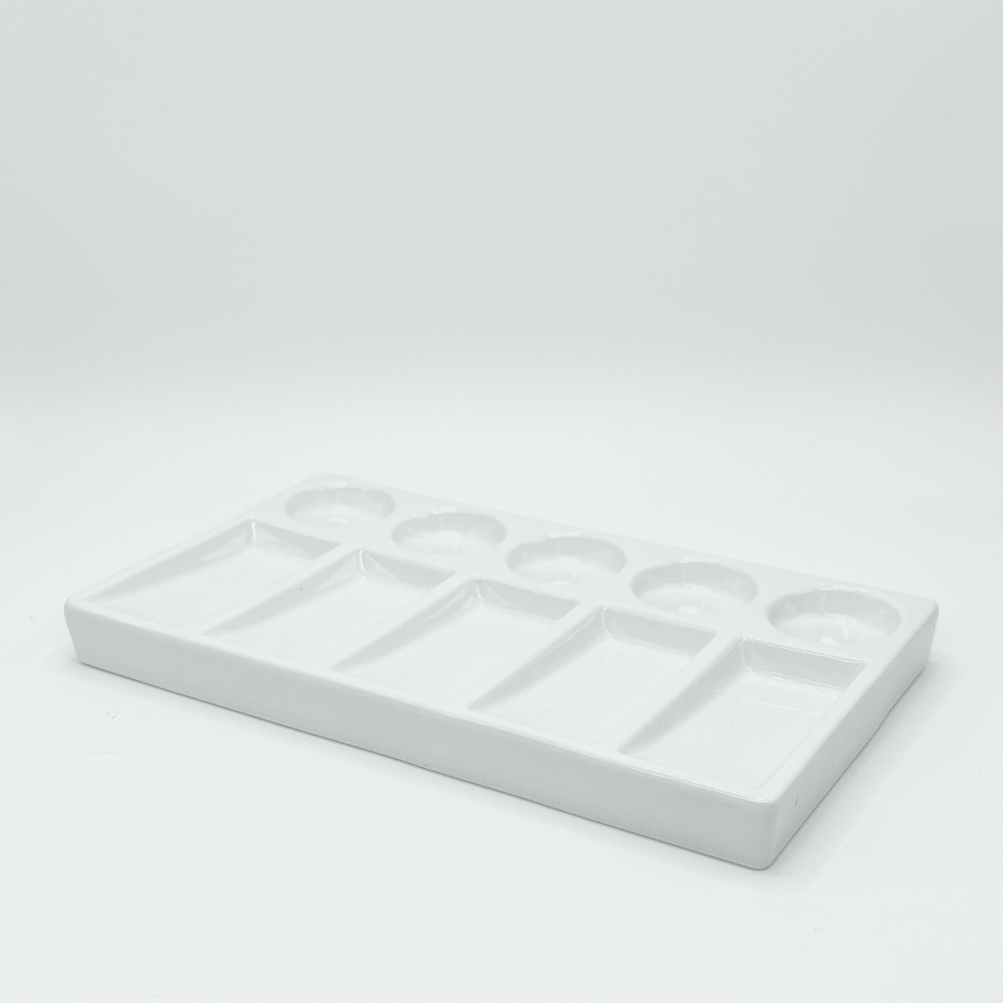 Palette RHINO 10 — Palette rectangulaire avec 10 emplacements fait main en céramique 100% porcelaine. Une belle pièce, massive et douce à la fois, comme un bébé rhinocéros…
