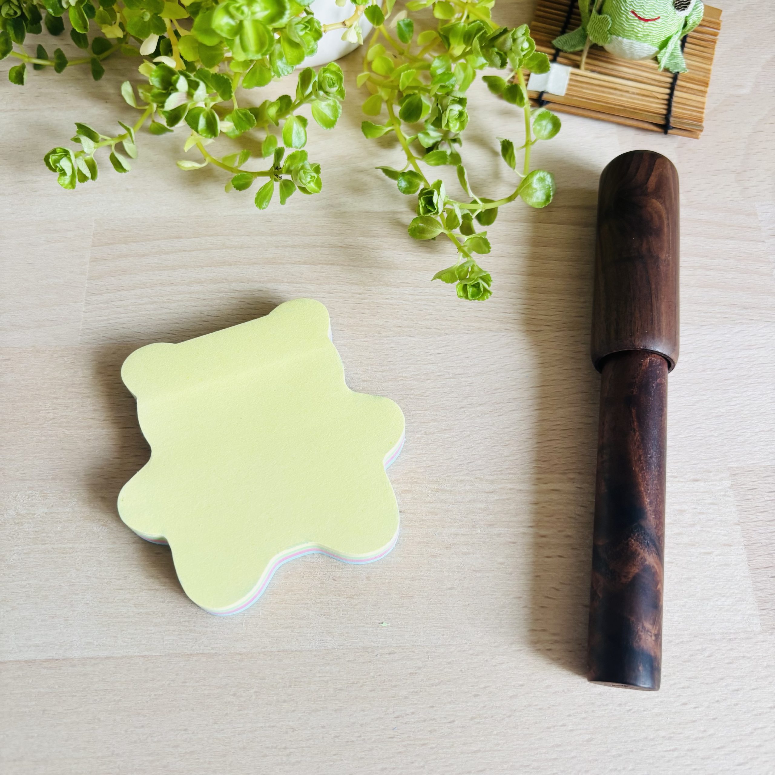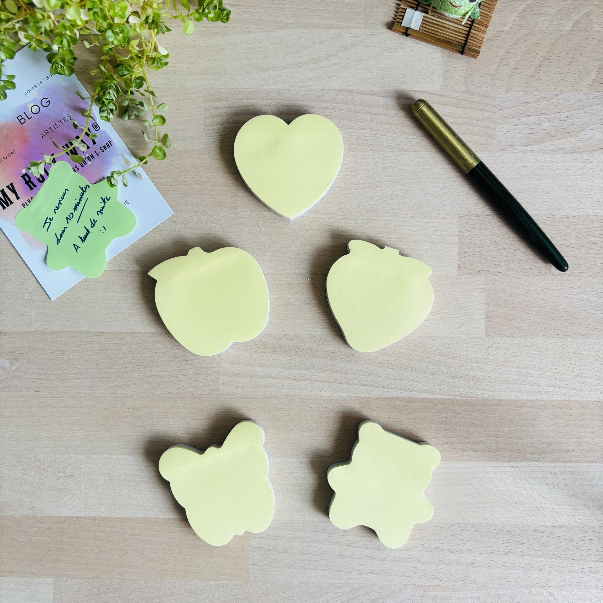 Chaque post it a 4 couleurs : jaune, vert rose et bleu