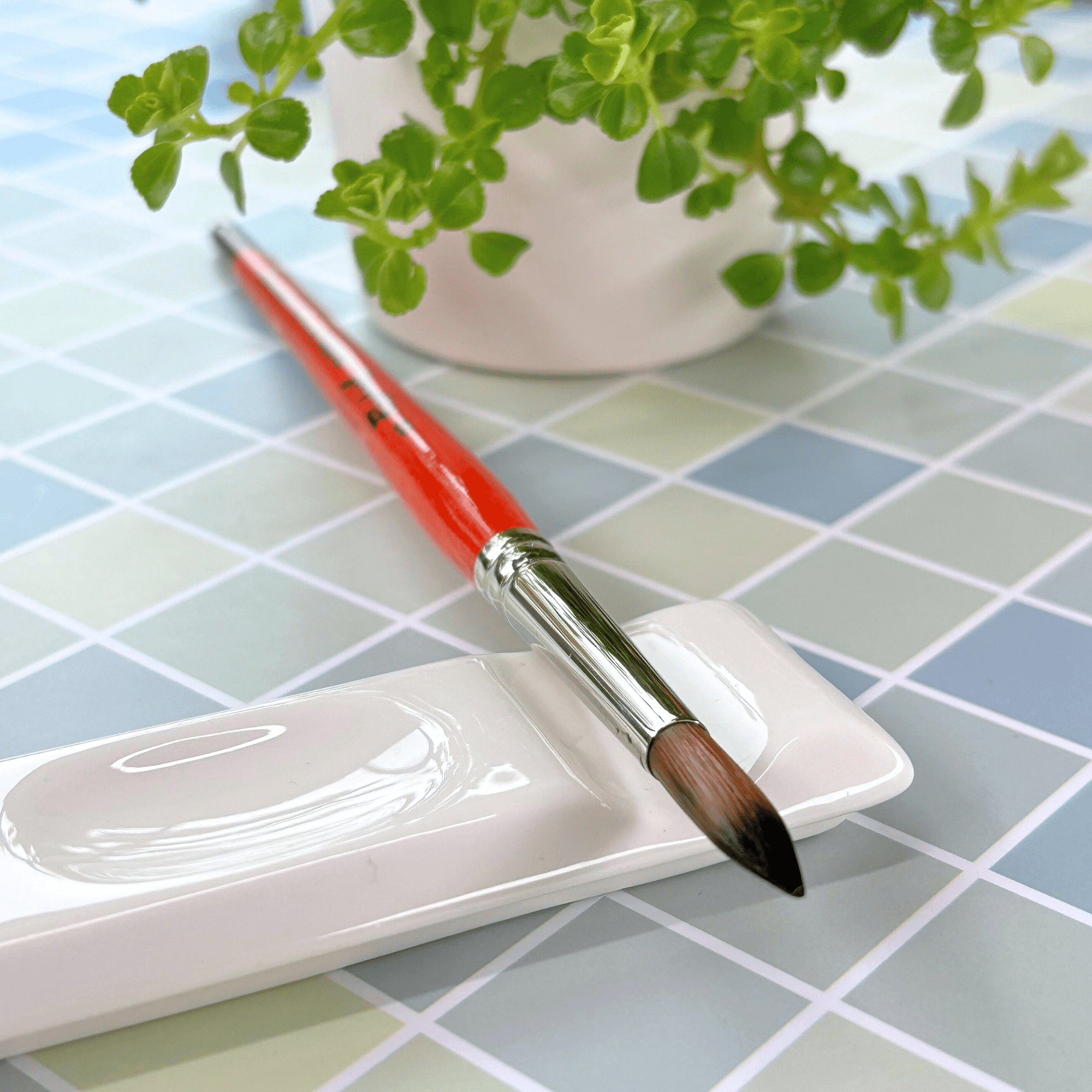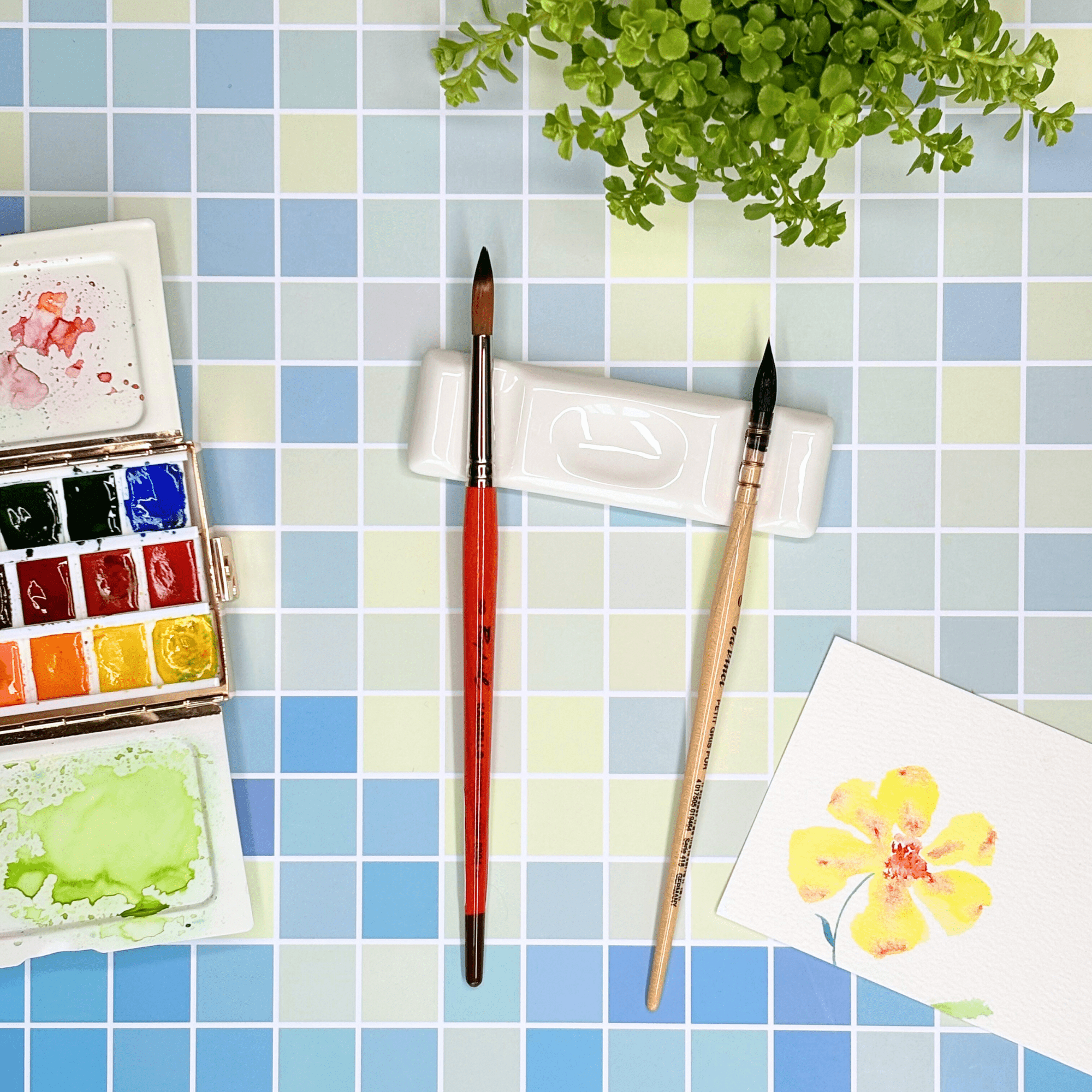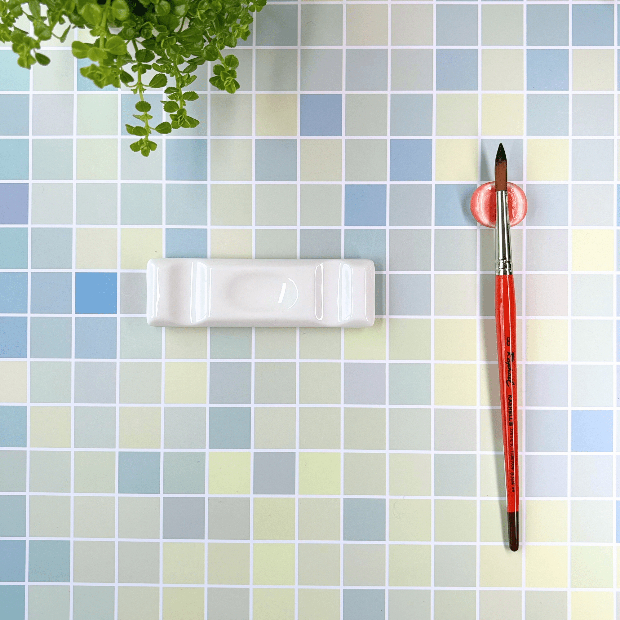 Ce repose-pinceau rectangulaire offre une solution simple pour garder vos outils à portée de main.