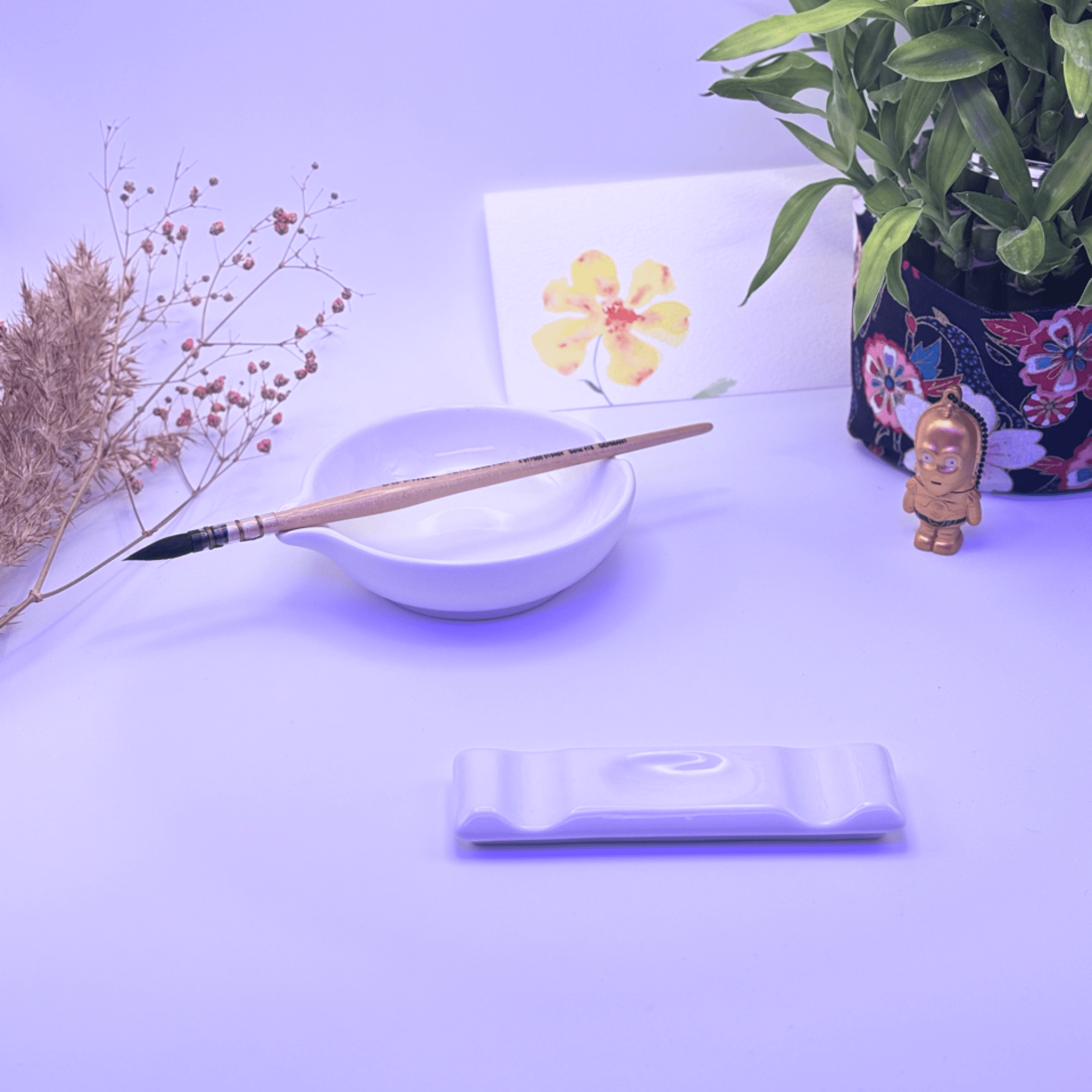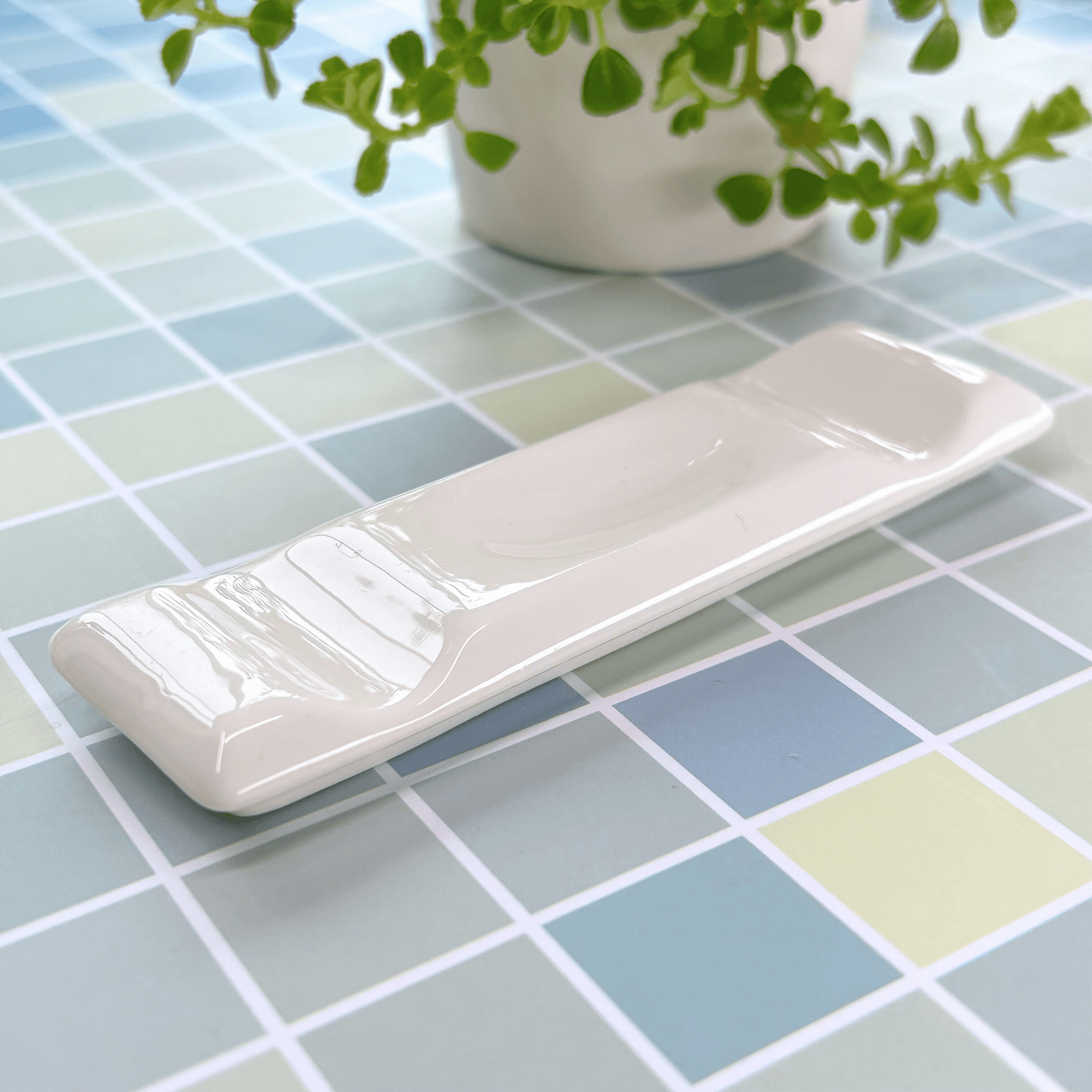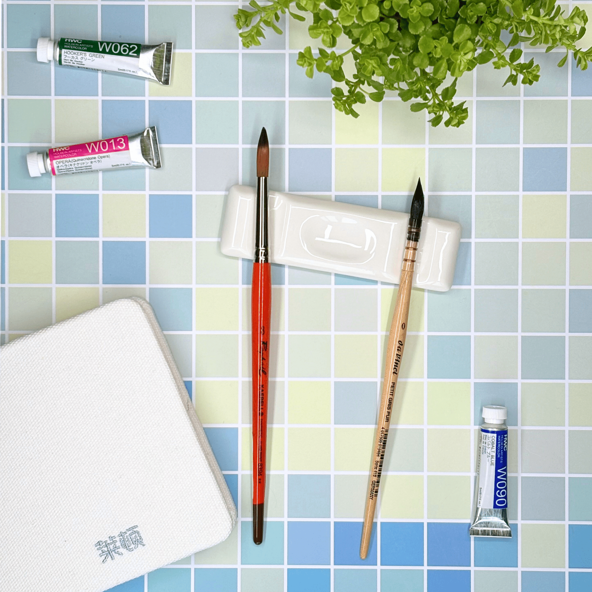 Ce repose-pinceau rectangulaire offre une solution simple pour garder vos outils à portée de main.