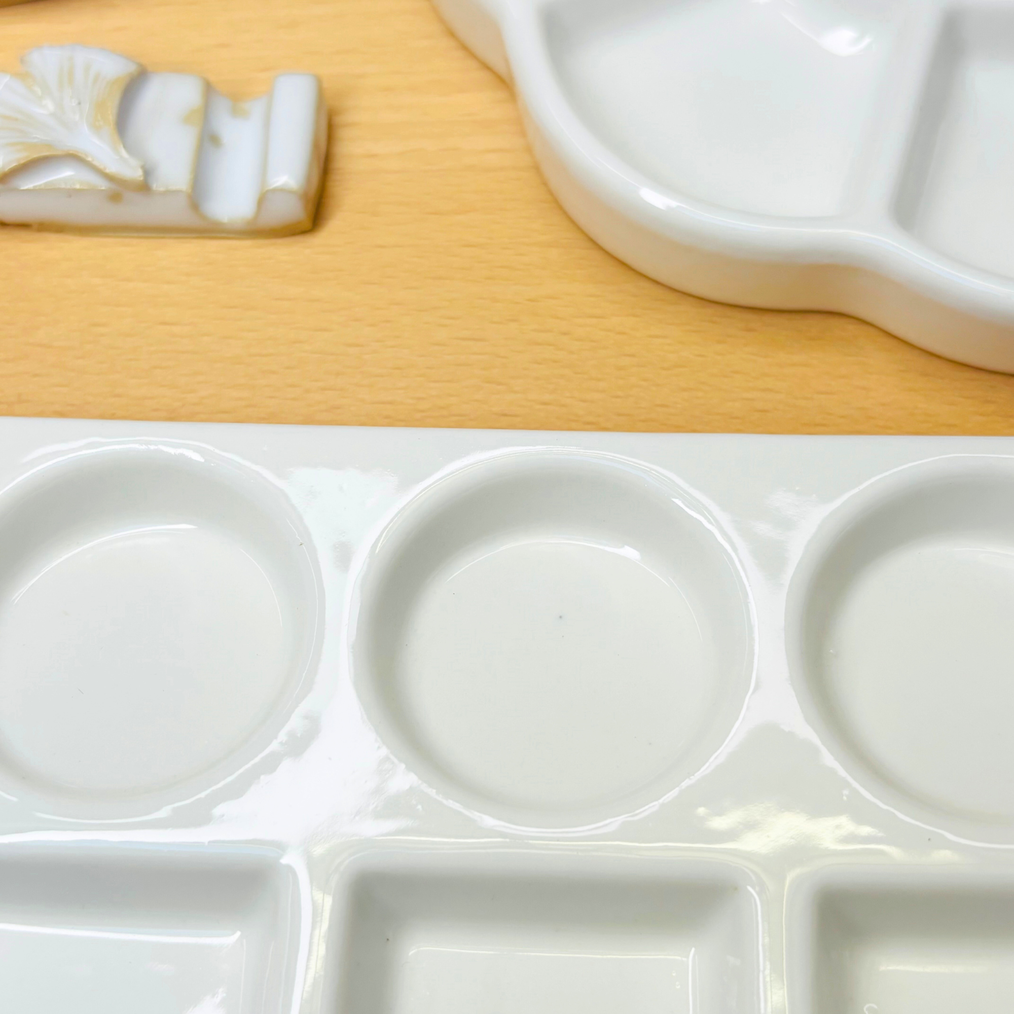 Un repose-pinceau en céramique en forme de feuille de gingko et recouverte d’un émail blanc brillant est façonnée à la main dans un atelier en France, elle est donc unique.