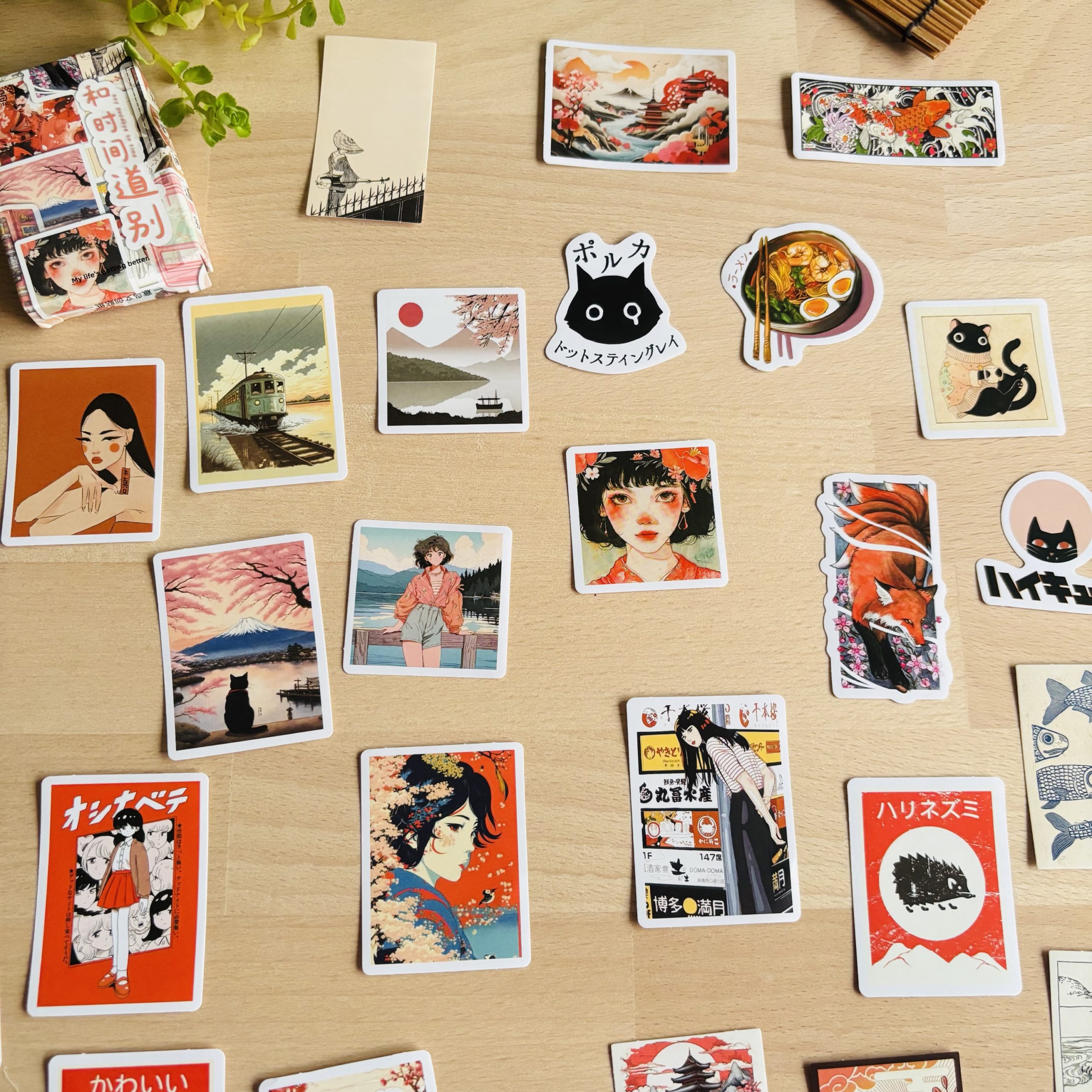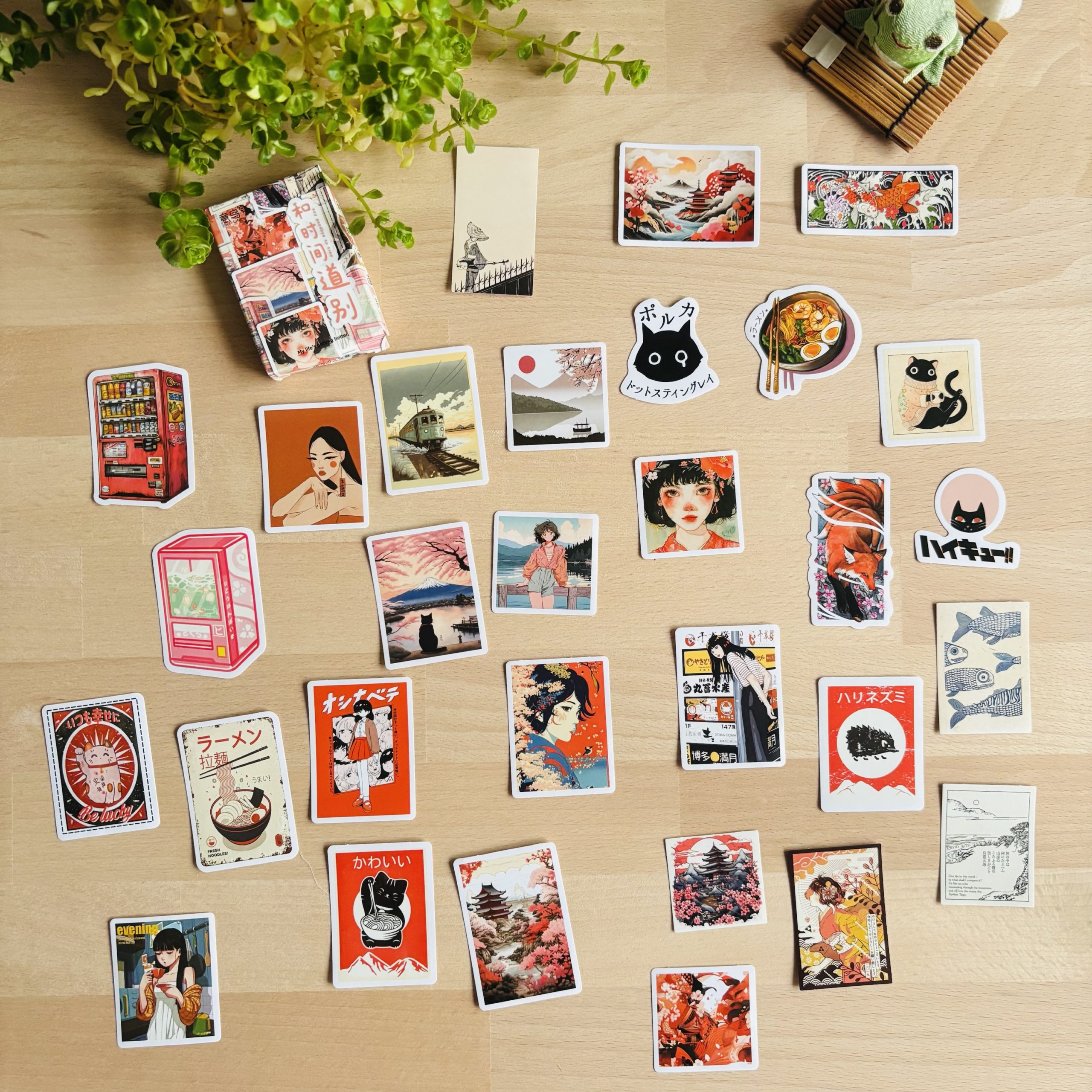 30 pièces, autocollants style kawaii nippon pour le scrapbooking.